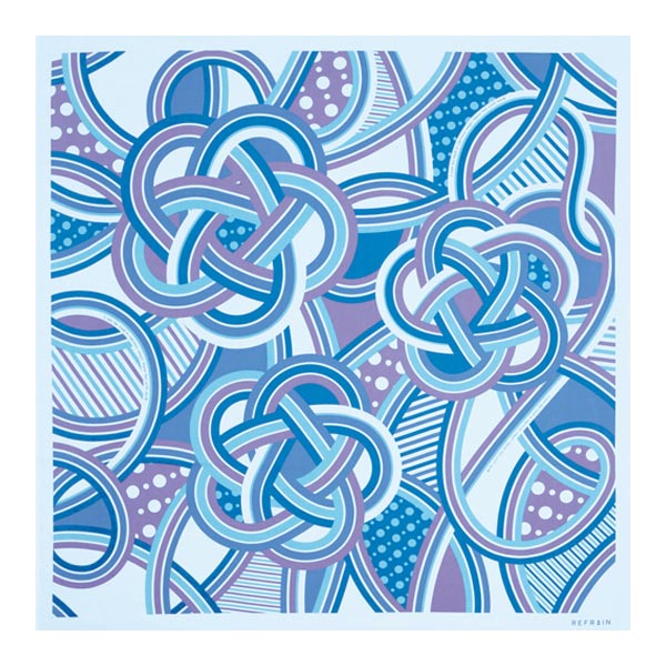 一般社団法人日本風呂敷マスター協会の札幌子育て風呂敷術「結びやゆいく」とのコラボレーションデザインを使用しました。固く結ばれた絆を意味する梅結びの水引がモチーフです。「結びやゆいく」のテーマカラーであるラベンダー色を中心に、ママたちの意見を取り入れた優しい色合いの風呂敷です。