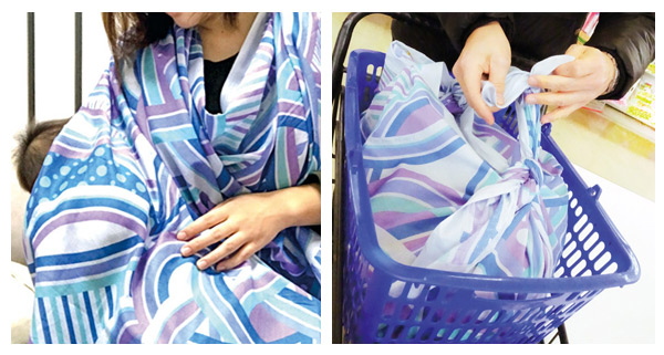 授乳ケープや買い物袋など用途に合わせて結び方を変えると様々なシーンで活躍します。
