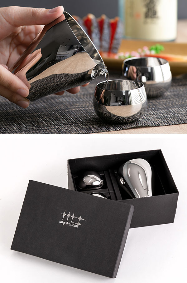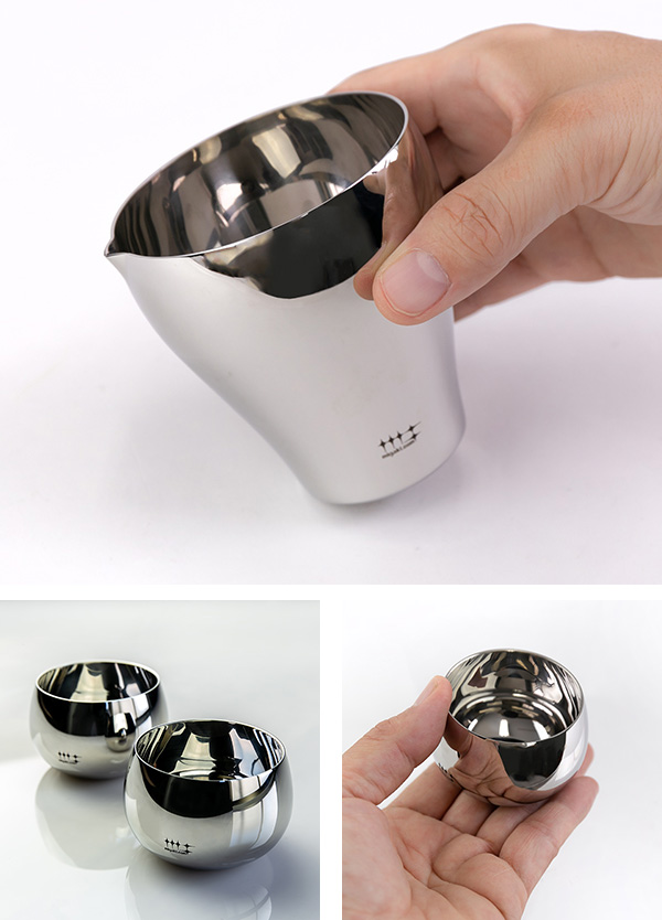 高級感あふれる美しい鏡面仕上げ 片口・ぐいのみセット