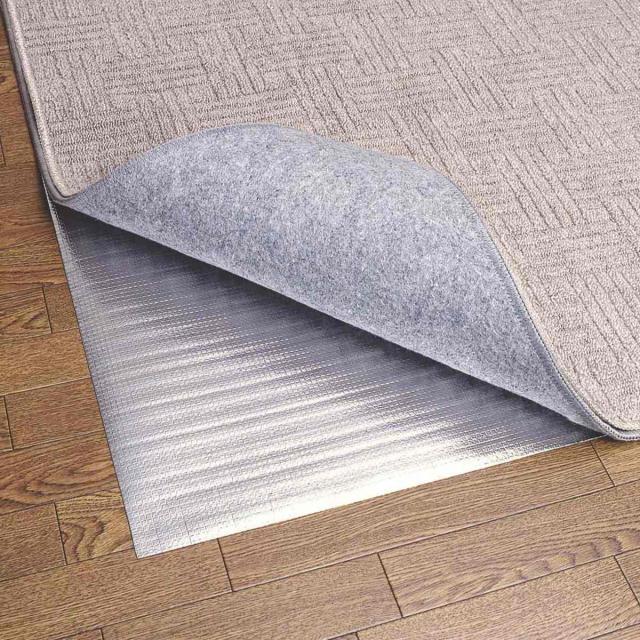 アルミフィルムの熱反射により熱を下に逃がさず、発砲ポリエチレン層は床からの冷気をシャットアウトし、ダブルパワーで寒さから足元を守ります。