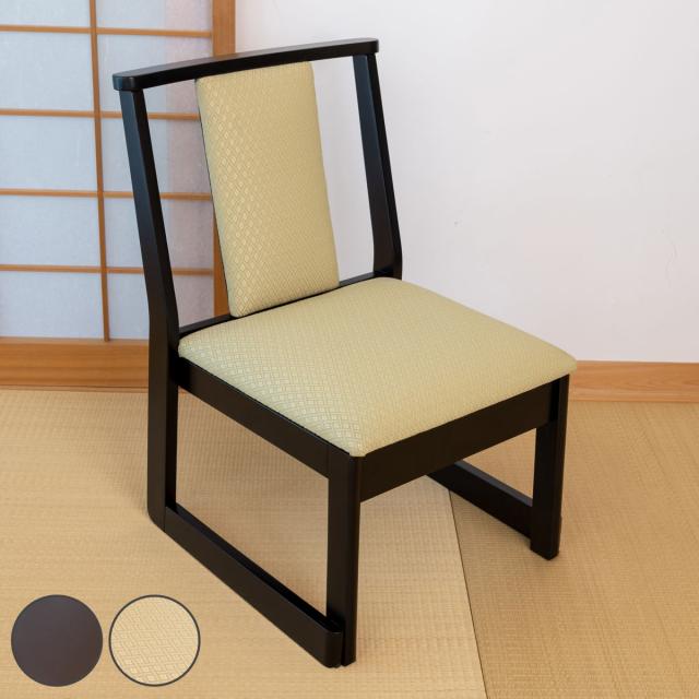 和風の雰囲気に合わせながら現代の生活スタイルにも合う、落ち着いたデザインのチェアです。法事などでの来客時に畳の上で正座が辛い方にも違和感なくお座りいただけます。
