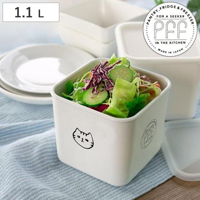 保存容器 1.1L 猫柄 角型 PFF NECO スクエアストッカー M 樹脂製 ( 保存 容器 フードストッカー キャニスター 電子レンジ対応 冷凍庫対応 食洗器対応 ストッカー スタッキング 白 おしゃれ ネコ ねこ 猫 )