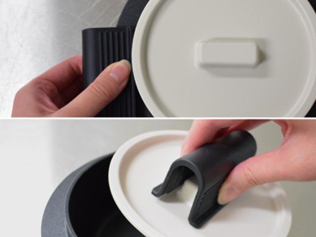 付属のミトンは、釜のツバをつかみやすくて滑りにくいシリコン製です。加熱後の熱くなった蓋のツマミもしっかりつかめるので安心です。