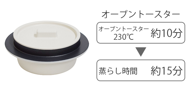 オーブントースターを使ってご飯を炊くことができるご飯釜です。加熱したあとはトースターから出さずに蒸らすことで、美味しく仕上がります。そのままテーブルに出しても可愛いデザインです。