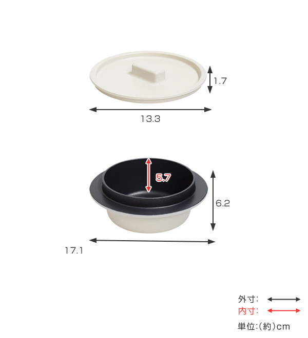 | サイズ | 蓋:約 直径13.3×高さ1.7(cm) 釜:約 直径17.1×高さ6.2(cm) 深さ:約 5.7(cm) |