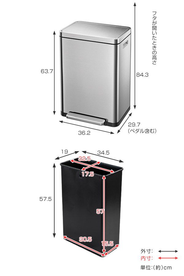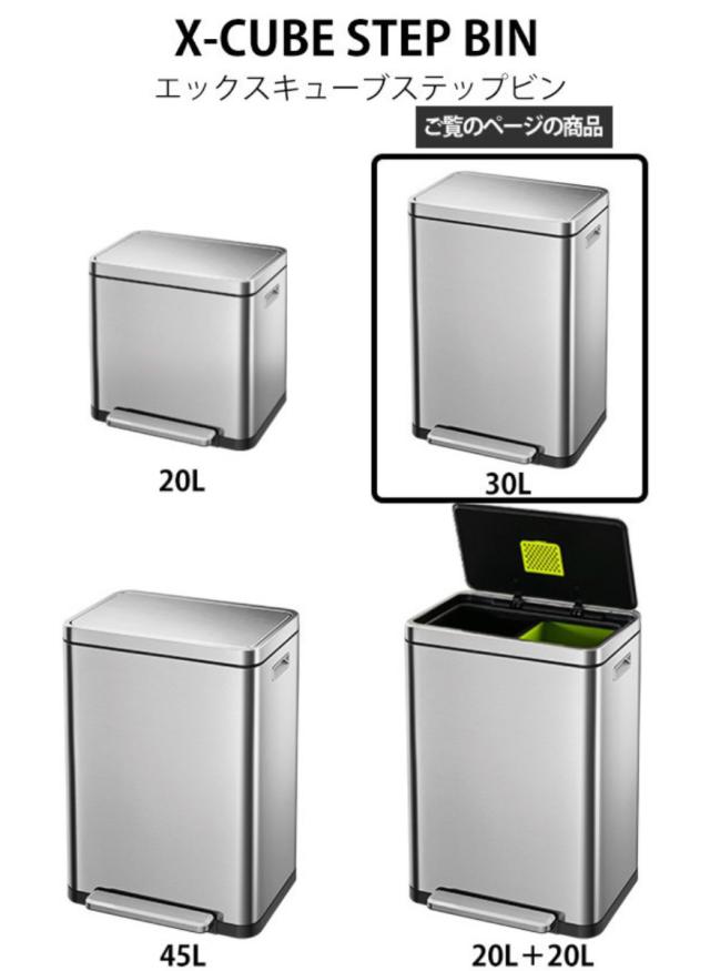 EKO ゴミ箱 30L Xキューブステップビン ペダル ( イーケーオー ごみ箱 30リットル 奥行36 ペダル式 ふた付き 分別 角型 ステンレス 一年保証付き ゴミ箱 ふた付き ゴミ箱 おしゃれ ゴミ箱 30リットル)