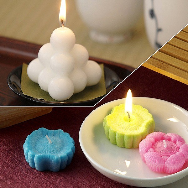 ●本物の和菓子を詰め合わせたかのような「お供え団子キャンドル」です。