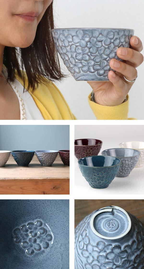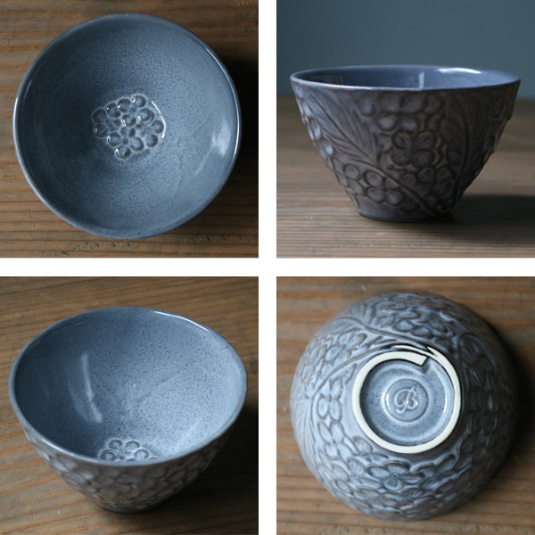 器の表面には凹凸があり、花が浮き出たデザインをしています。底にも丁寧に彫られた花がデザインされており、一点ずつ異なる美しい色味をした器は毎日使うのが楽しみになります。
