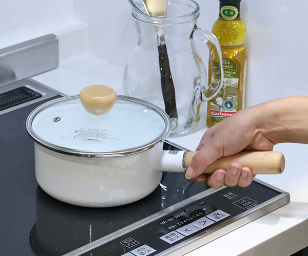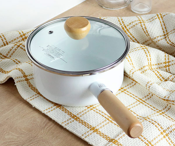 | 材質 | 本体:ほうろう用鋼板 取っ手・蓋つまみ:天然木 本体枠部・蓋金属部:ステンレス鋼 ガラス蓋:強化ガラス |