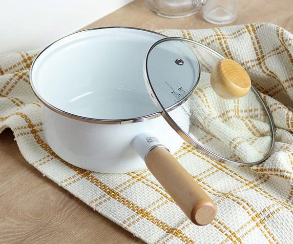 お洒落で飾りたくなるような16cmの片手鍋です。ホーローの質感が美しく、キッチンを優しい雰囲気にしてくれます。ちょこっと作りたい方や少量の煮物、1〜2人分のお味噌汁やスープ作りにもオススメです。
