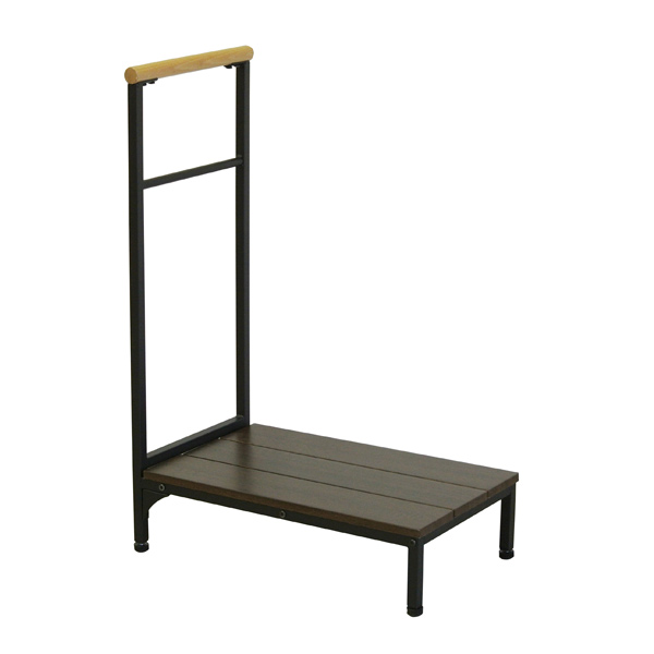 玄関 踏み台 幅60cm 手すり付き 片側タイプ ( 玄関台 玄関ステップ 昇降台 段差 軽減 靴 昇降 補助具 足場 木製 天然木 組立式 組み立て 補助台 台 玄関踏台 転倒防止 アジャスター付き 安定 木製ステップ 足置き )