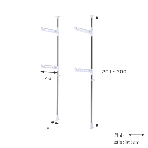 | サイズ | 約 幅5×奥行46×高さ300(cm) 最大外寸 約 高さ201〜300(cm) |