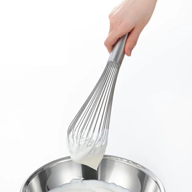 プロが使う泡立て器にも使われているピアノ線12本使用して造った本格仕様の泡立て器です。空気をたっぷりと含ませ、手早くきめ細かい泡立てができます。