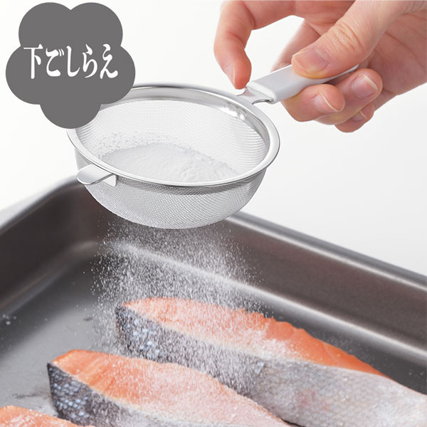 ●小麦粉や片栗粉、粉糖などをふりかけるのに便利な粉ふりストレーナーです。