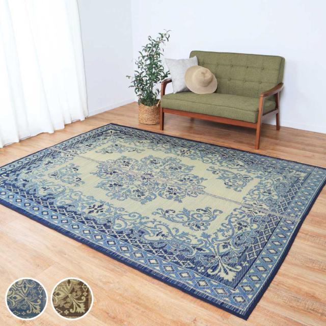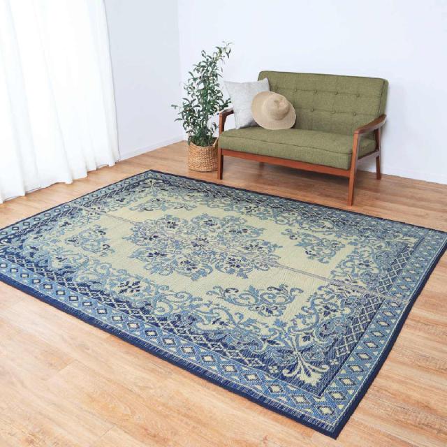 ラグ い草ラグ 176×230cm 約2.5畳 薄手 ござ 裏貼り カノン ブルー ( い草マット マット ラグマット い草 カーペット じゅうたん センターラグ ゴザ 畳マット いぐさ 軽量 夏用 おしゃれ ペルシャ風 )