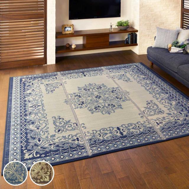 《 い草カーペット 畳 イグサ 井草 夏 涼しい 消臭 調湿 防カビ 2帖 夏ラグ オシャレ 和室 洋室 フローリング リビング インテリア モダン スタイリッシュ 二畳 二帖 ブルー ベージュ 青 茶 花 フラワー ペルシャ絨毯風 四角 角型 正方形 床暖房 床暖 ホットカーペット 》