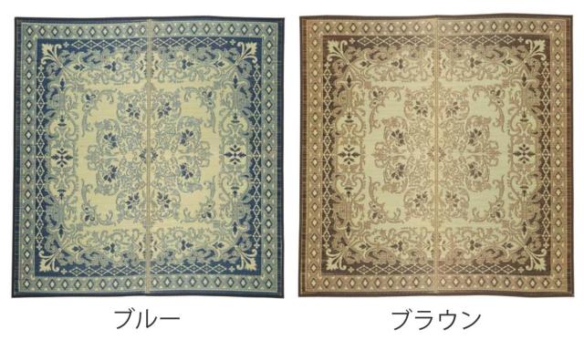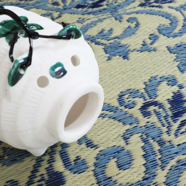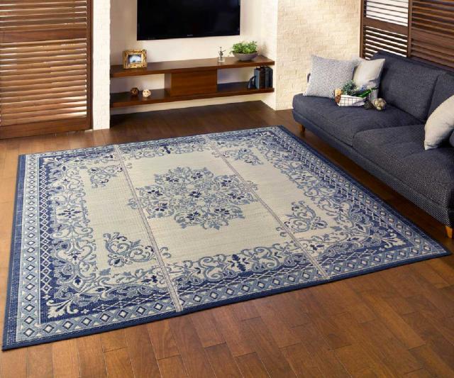 ラグ い草ラグ 176×176cm 約2畳 薄手 ござ 裏貼り カノン ブルー ( い草マット マット ラグマット い草 カーペット じゅうたん センターラグ ゴザ 畳マット いぐさ 軽量 夏用 おしゃれ ペルシャ風 )
