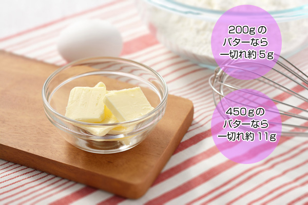バターを常温に戻して、ぎゅっとひと押しで40個にカット!バターがほぼ均等にカットできるので、お菓子やパン作りの際に分量の目安になります。