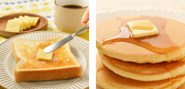 トースト、ホットケーキ、じゃがバターなど必要な時にすぐ使えます。薄切りだから溶けやすく使いやすいです。