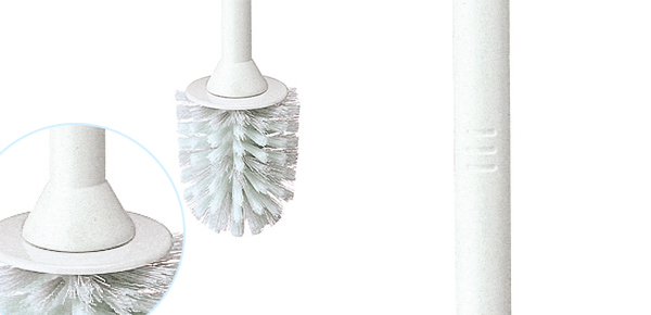 | 水はねをしにくくする ブラシと柄を繋ぐ部分にはエプロンが付いています。水はねを防ぎ手や衣類を汚れにくくしてくれます。 | 柄にはすべり止め付き 柄の持ち手側にはすべり止め加工が施されています。便器を擦っている時にブラシを落としにくいです。 |