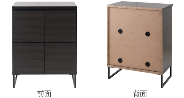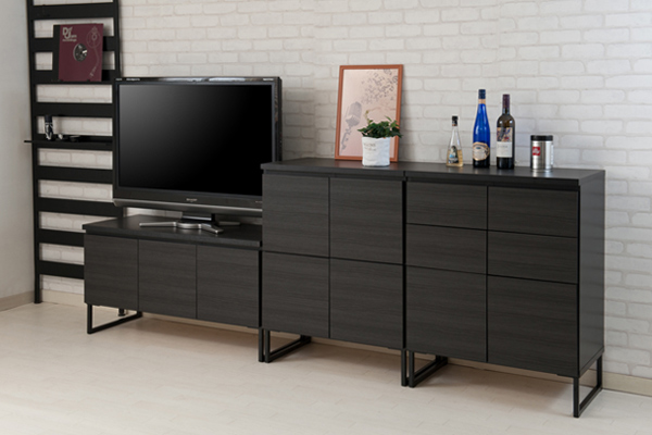 オールブラックで仕上げられたキャビネットは風格のある存在感を放ちます。スチールの脚で床上に適度な空間を作ることで重厚感を和らげ、リビングをシックにかっこよく演出してくれます。