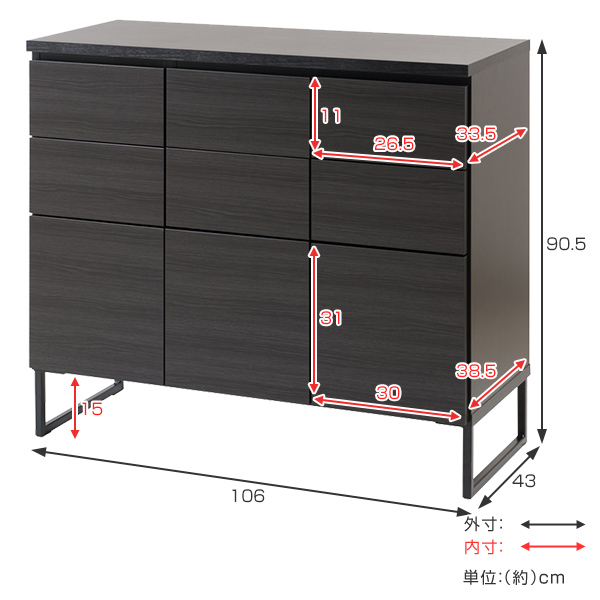 | サイズ | 約 幅106×奥行43×高さ90.5(cm) |