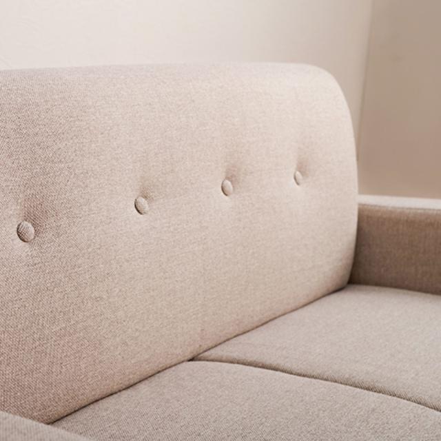 生地はファブリックを使用しており温かみのある質感です。背もたれのくるみボタンがアクセントになって優しい雰囲気を醸し出してくれています。