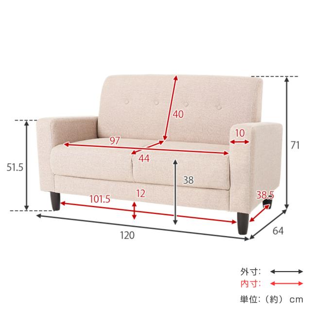ソファ 2人掛け 幅120cm 肘掛け付き ( ソファー コンパクト 2人 二人 掛け 2P チェアー チェア 椅子 いす イス 布 張り 製 おしゃれ 肘あり 肘付き 脚付き ローソファ )