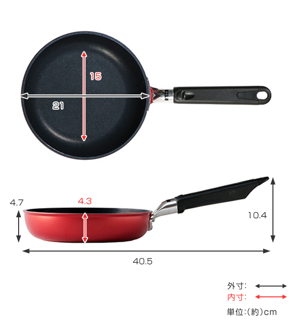 | 材質 | 本体:アルミニウム合金 本体内面:ふっ素樹脂塗膜加工 本体外面:焼付け塗装 ハンドル:フェノール樹脂 フック部分:66ナイロン |
