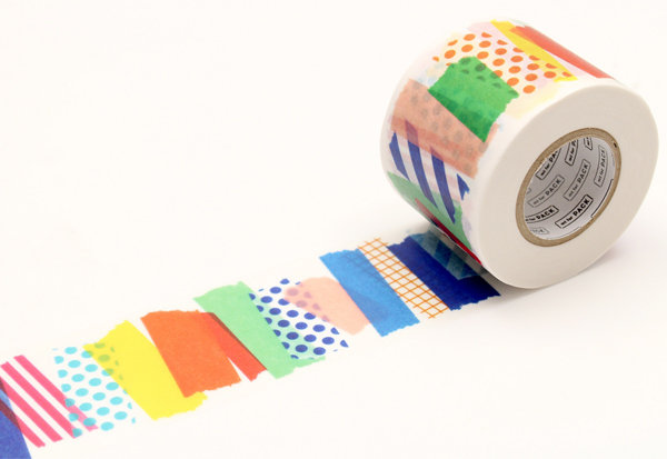 たくさんのマスキングテープを貼り合わせたようなユニークな柄です。センスの良さが光るデザインの「mt for PACK」は梱包用テープとしてだけでなく、ラッピングや小物のアレンジにもおすすめです。