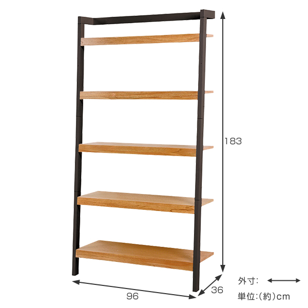 立て掛けラック 幅96cm 5段 木製 モノトーン ( オープンラック 壁面収納 立て掛け 棚 収納棚 収納ラック シェルフ 多目的ラック 収納 ウォールラック ウッドプロダクツ ディスプレイラック 収納ラック マガジンラック シンプル )