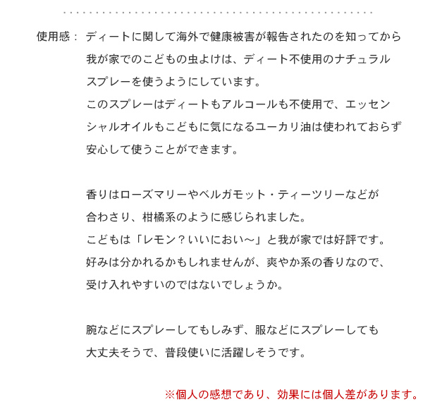 | 備考 | ディート、防腐剤、アルコール不使用 |