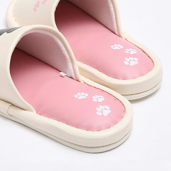 まんまるネコちゃんのシルエットがプリントされている可愛いスリッパです。水を弾くポリウレタン素材なので、濡れたらサッと一拭きできて、お手入れが簡単です。洗面所やキッチン、トイレ用として重宝します。