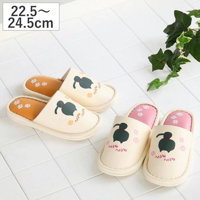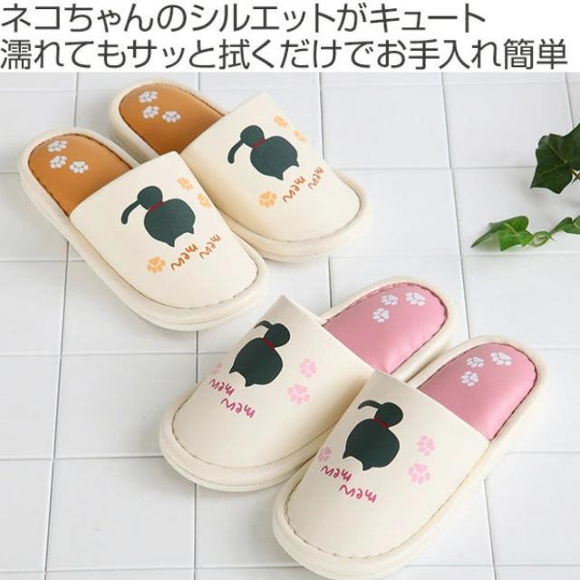 スリッパ トイレスリッパ ふきふきシルエットねこスリッパ外縫い M ネコ ( ルームシューズ ルームスリッパ 室内 ねこ 猫 レディース お手入れ簡単 汚れにくい 撥水 水を弾く トイレ キッチン 来客用 室内用 会社 オフィス 前詰め )