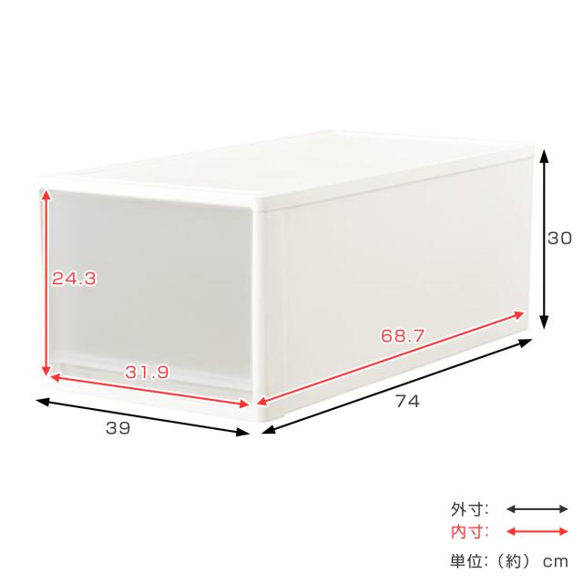 | サイズ | 約 幅39×奥行74×高さ30(cm) 引き出し内寸:約 幅31.9×奥行68.7×高さ24.3(cm) |
