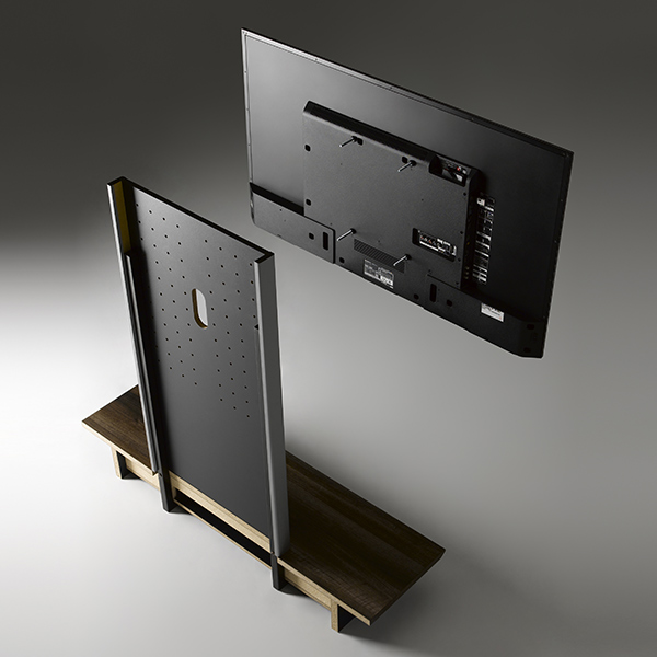 テレビ背面に直接金具を取り付けてスタンドと固定するため、ぴったりとフィットします。空間の無駄がなくしっかりと壁に寄せることができます。