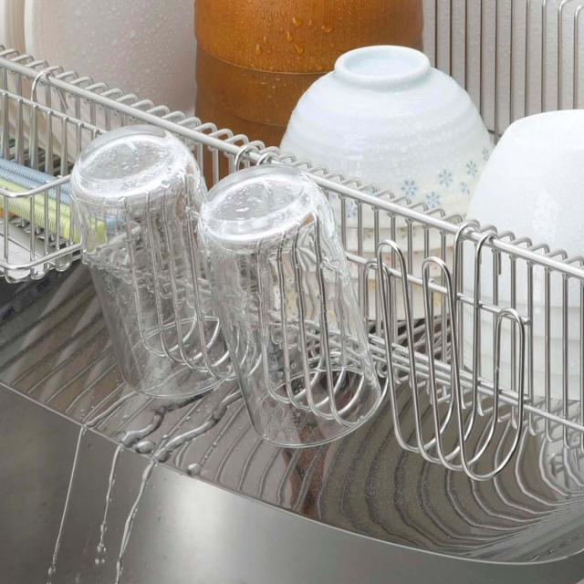 今お使いの水切りラックに掛けるだけで使えるグラスフックです。場所を取りがちなグラス類をラックの外側に掛けるだけで食器の収納量が増えて毎日の洗い物が快適に進みます。