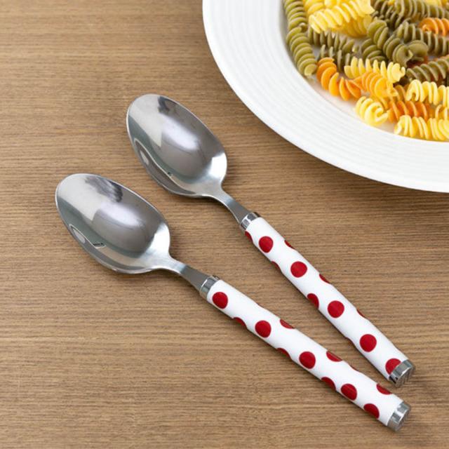 スプーン 大 セット 2本入り ステンレス ドット 赤 ( 洋食器 カトラリー 大きい 盛り付け カレー デザート 匙 シチュー パスタ サラダ アイス ケーキ おしゃれ )