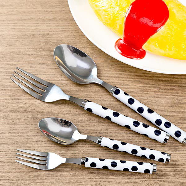 大きめのドット柄がかわいい、カトラリー4本セット