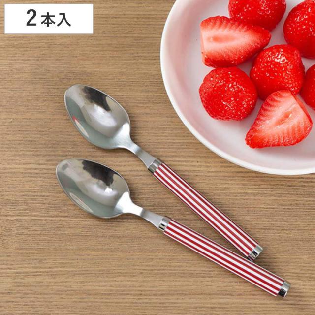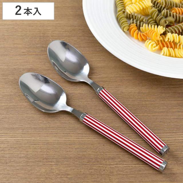 スプーン 大 セット 2本入り ステンレス ストライプ 赤 ( 洋食器 カトラリー 大きい 盛り付け カレー デザート 匙 シチュー パスタ サラダ アイス ケーキ おしゃれ )