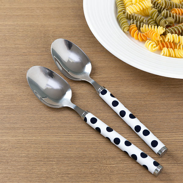スプーン 大 セット 2本入り ステンレス ドット 紺 ( 洋食器 カトラリー 大きい 盛り付け カレー デザート 匙 シチュー パスタ サラダ アイス ケーキ おしゃれ )