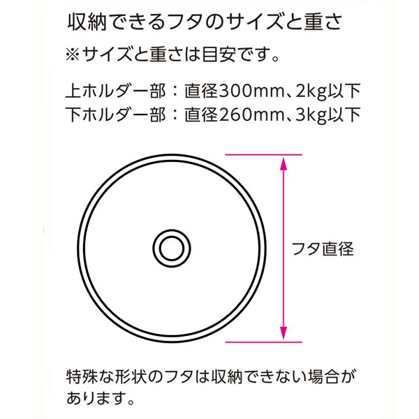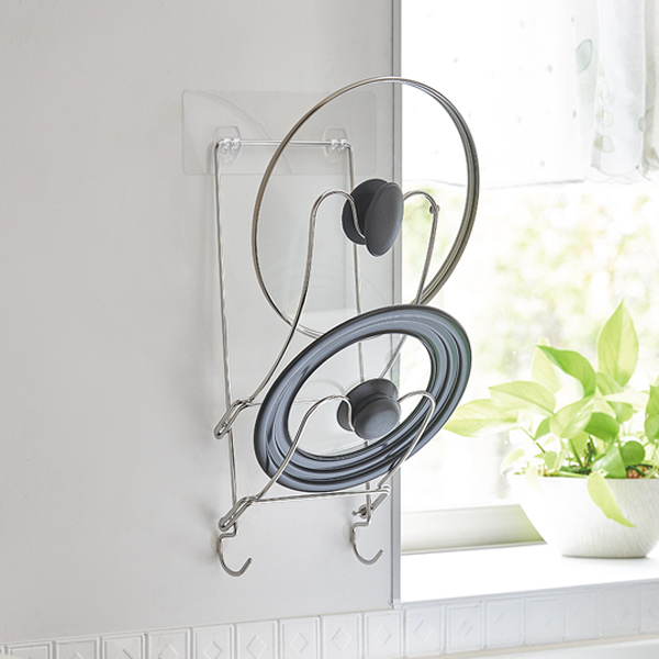 重い物でも変形しない太さ4.5mmの高品質のステンレス線材を使用しているので、大きなフタもサッと収納できる安心の耐荷重5kg。調理しながらでも手が届くコンロ奥に設置することで調理がスムーズにはかどります。