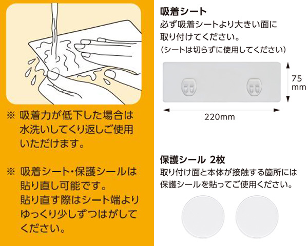 | サイズ | 約 幅17.5×奥行14.5×高さ39.5(cm) 吸着シート:約 幅22×高さ7.5(cm) 保護シール:約 直径2(cm) |
