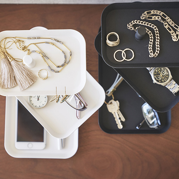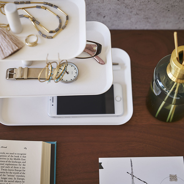 リビングの棚や玄関棚に普段使うメガネやアクセサリー、鍵類などまとめて収納できます。トレーの向きを変えることができ、より小物類をおしゃれに演出することができます。