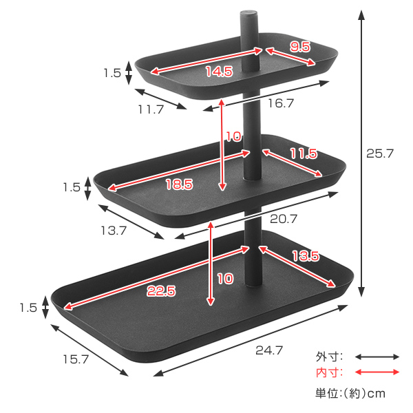 小物をおしゃれに収納できる3段トレー