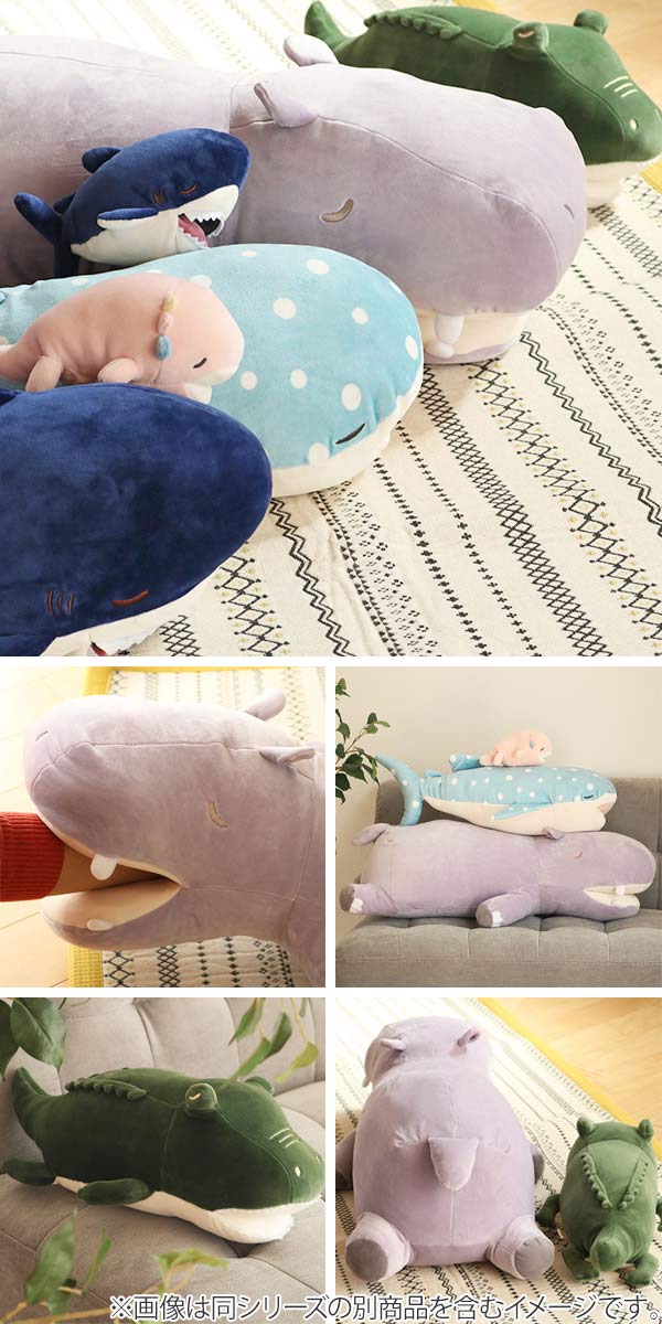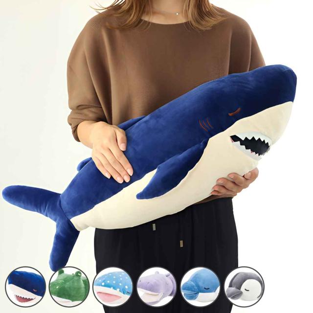 抱きまくら Lサイズ プレミアムねむねむアニマルズ かむかむズ ( ぬいぐるみ 動物 海 枕 だきまくら クッション 抱き枕 もちもち アニマル 昼寝 うつぶせ寝 洗える 寝具 ゆるかわ かわいい サメ ワニ カバ イルカ ペンギン )
