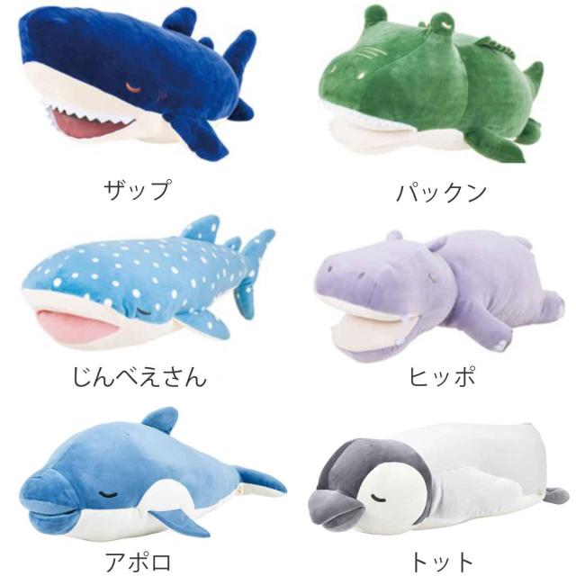 抱きまくら Mサイズ プレミアムねむねむアニマルズ かむかむズ ( ぬいぐるみ 動物 海 枕 だきまくら クッション 抱き枕 もちもち アニマル 昼寝 うつぶせ寝 洗える 寝具 ゆるかわ かわいい サメ ワニ カバ イルカ ペンギン )