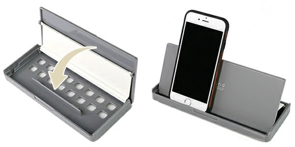ミラースタンドにもなるから、食後の身支度にも便利です。使った後はまたくるっと回してお弁当箱と一緒に片付けるだけです。