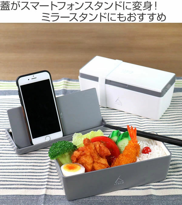 お弁当箱 1段 スマホスタンド ランチボックス 700ml ( シンプル 弁当箱 おしゃれ 大人 お箸 保冷剤 stand 食洗機 レンジ対応 日本 日本製 お箸付き )