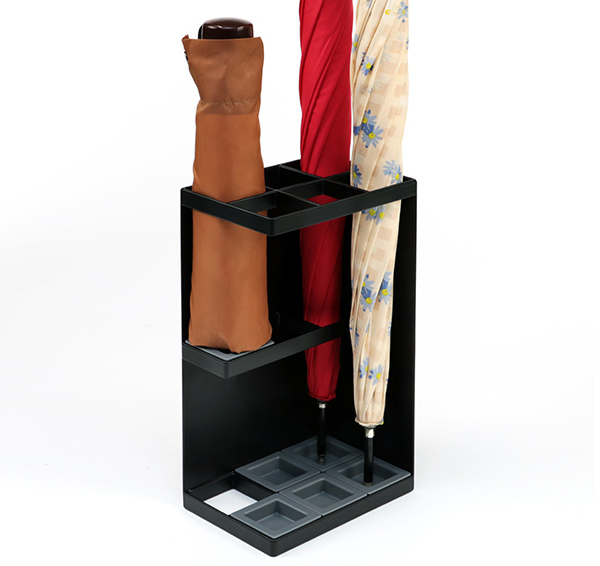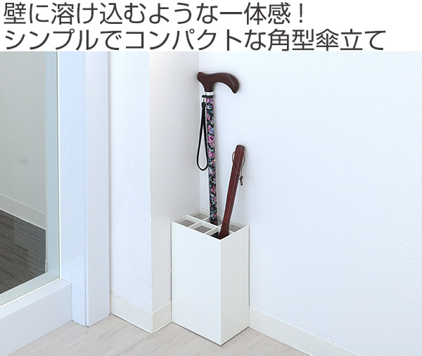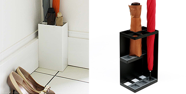 玄関の角にぴったりと収まる、コンパクト角型傘立て